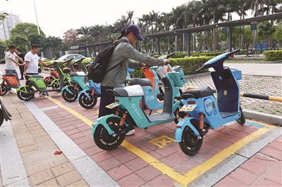一企业现场负责人向记者演示了借车、还车的完整流程。借车时,市民只需打开微信或支付宝,扫描车头或者车尾的二维码进行授权登录,随后阅读安全提示,确认车辆电量、头盔状态等信息,佩戴好头盔后即可免押金解锁骑行。还车时,市民需选择就近停车点位,将车身垂直停放在黄色停车框内,车头尽量靠近蓝线,放回头盔,并根据手机提示完成还车操作。