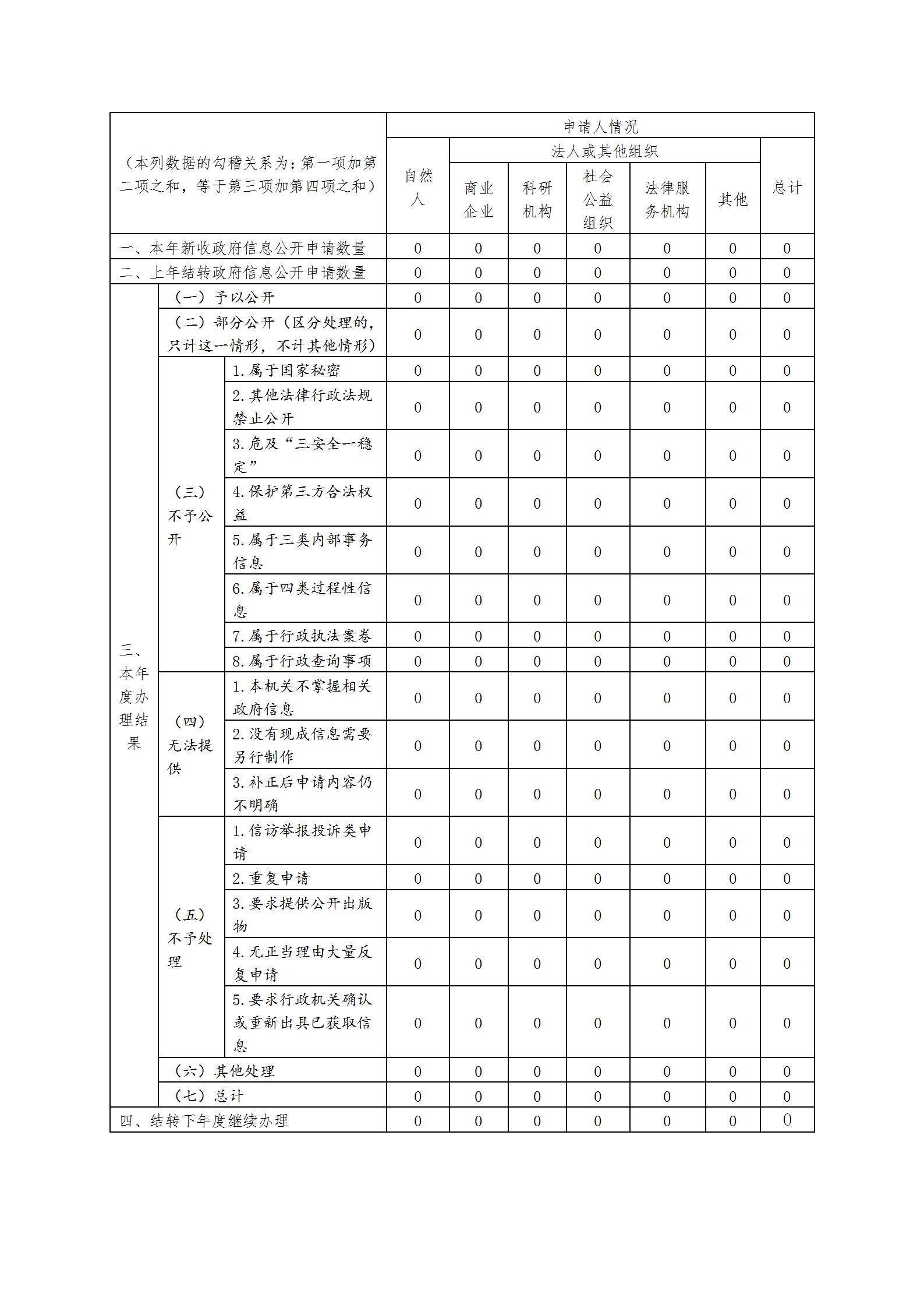 三、收到和处理政府信息公开申请情况