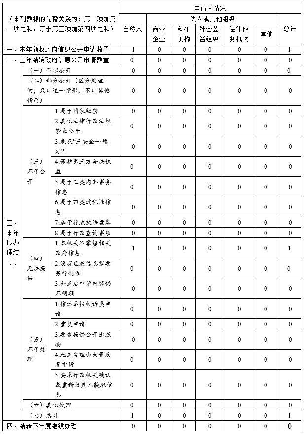 (二)依申请公开政府信息情况。2019年我局共受理政府信息公开申请1件,该申请件为网络申请件且非本机关政府信息,我局已按时办结。