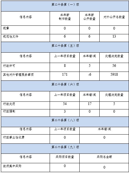 (三)政府信息管理情况。专门成立局政府信息公开工作领导小组,配备1名兼职工作人员统筹政府信息公开工作,设立1个专门的信息申请受理点,严格要求做好主动公开政府信息移交市档案馆和市图书馆工作。2020年来,制作、获取政府信息总数289条,其中主动公开信息15条,依申请信息公开信息185条,不予公开信息89条。