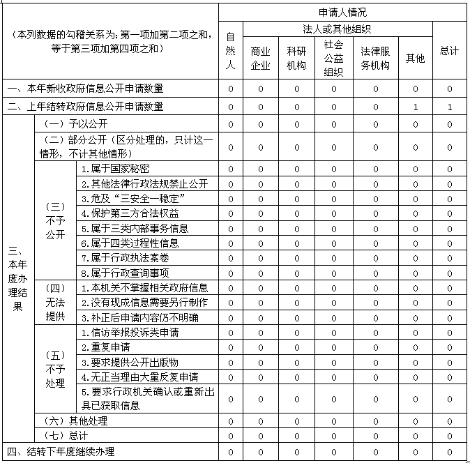 三、收到和处理政府信息公开申请情况