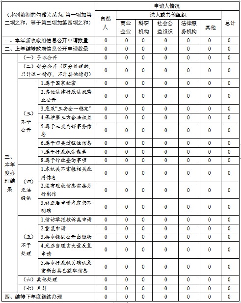 (二)依申请信息公开情况。未受理政府信息公开申请,未因政府信息公开被提起行政复议或行政诉讼。