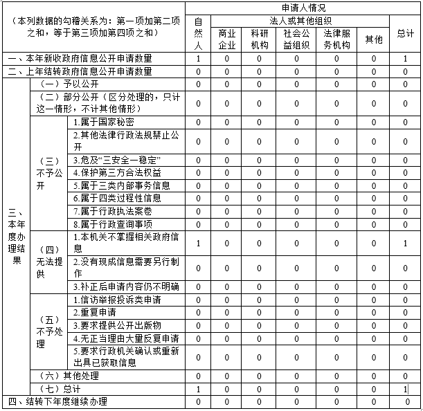 2019年度受理依申请公开信息1条,已答复数1条,答复情况为政府信息不存在数1条。