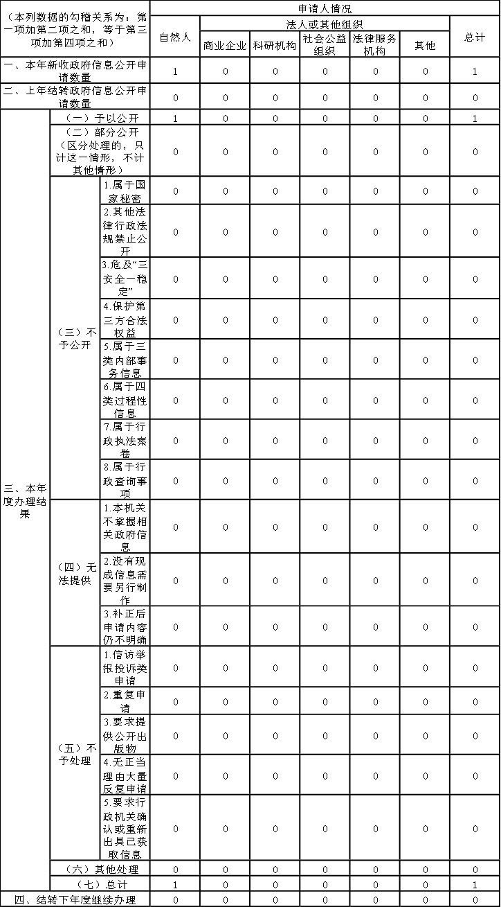 2020年度我局接到1条群众提出政府信息公开的申请,未发生因政府信息公开被申请行政复议、被提起行政诉讼情况。