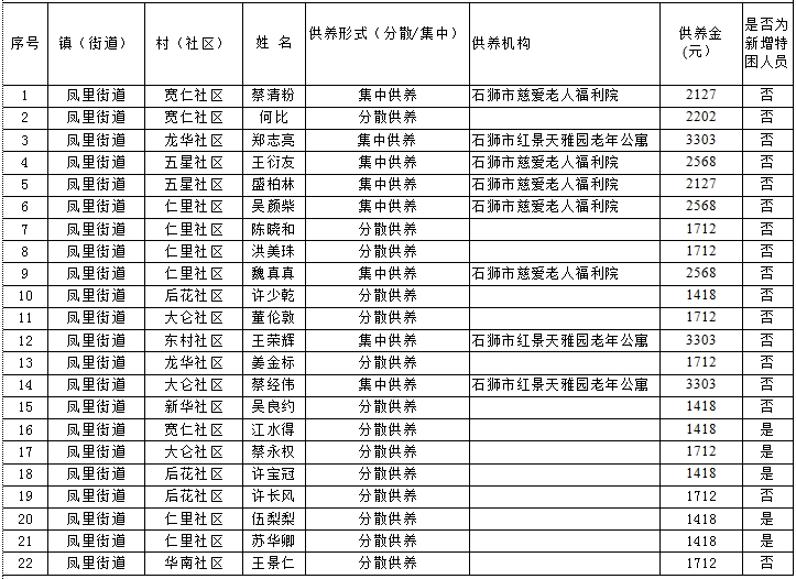 - 标题:【临时救助】凤里街道2024年7月特困人员供养金花名册