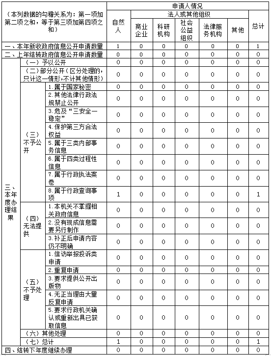 1.受理申请的数量1条(含2019年度1条及历年0条,累计1条),主要网上申请公开;