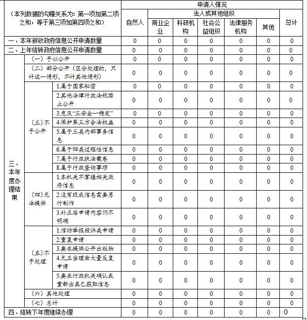 三、收到和处理政府信息公开申请情况