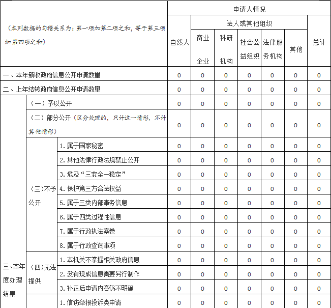 三、收到和处理政府信息公开申请情况
