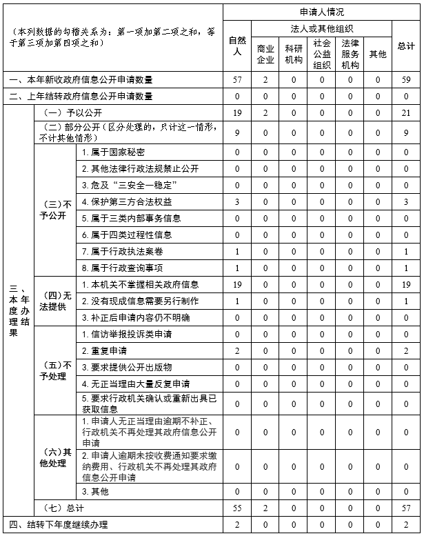2021年,我市印发《成人网站 政府信息公开申请办理工作机制》,完善政府信息公开申请登记、审核、办理、答复、归档等办理制度,分类制作程序处理文书7种、实体处理文书19种,提升答复文书规范化水平。全年共收到公开政府信息的申请59件,按时办结51件,延期办结6件,结转下年度继续办理2件,受理方式主要包括网络申请11件、信函申请29件、当面申请19件,其中:“予以公开”21件;“部分公开”9件;“不予公开”5件,主要涉及行政执法案件材料、保护第三方合法权益、属于行政查询事项等方面;“无法提供”20件,主要是政府信息公开被申请行政机关不掌握相关政府信息;“不予处理”2件,主要是申请人对同一内容进行重复申请。2021年,未因政府信息公开被申请行政复议;因政府信息公开提起行政诉讼3件,尚未审结1件、结果纠正2件。